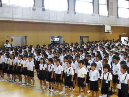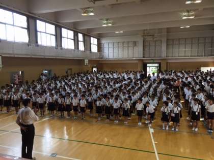 今日は体育館で始業式を行いましたが、子ども達の熱気でムンムン、少し気分が悪くなった児童も出てしまいました。