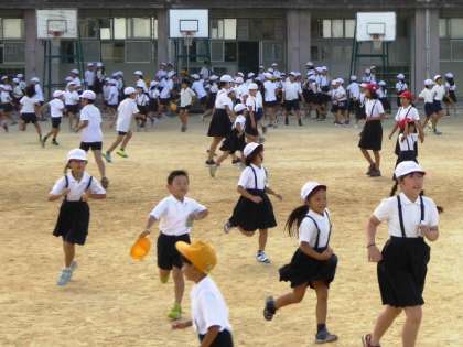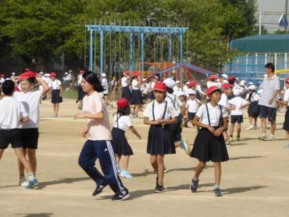 薄日がさし暑さが和らいだ中、今日は、運動場に集合です。