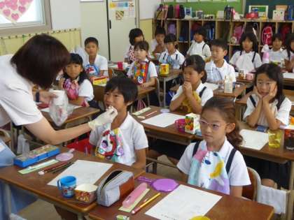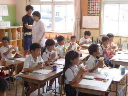 2年生は歯科衛生士さんをお招きし「歯磨き指導」を行いました。