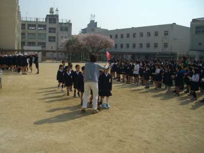 今日は7日に入学した1年生と、2年生〜6年生が初めて顔をあわせる対面式がありました。6年生の花道に導かれて1年生が登場すると、大きな拍手がわきおこり、緊張した面持ちの1年生の顔にも笑顔がみられました。全学年が集合して6年生代表のお迎えのことばをきいたり校歌を歌ったりして、今年度の豊里小学校の教育活動が本格的にスタートしました。(教務)