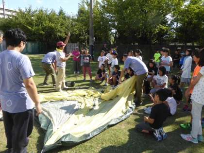 ボーイスカウトの方にテントの立て方を教えてもらった後は自分たちで