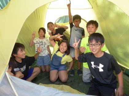 たくさんの児童にいろんな体験をしてもらおうと、グループを2つに分け、1〜4班は「テント設営」、5〜8班は「カレーづくり」です。