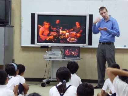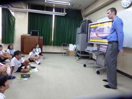 その前には韓国で4年間の英語指導経験もあり、高等学校でも英語を教えていたそうです。片言ながら日本語も理解しており、ゆっくり丁寧に話してくれる英語に子ども達の目はキラキラ。先生の一言一句に注目していました。