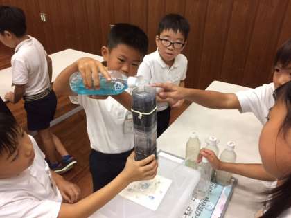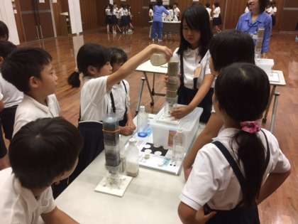 生活に欠かせないきれいな水がどのようにしてつくられているのかを、ろ過の実験を体験することで具体的に知ることができました。