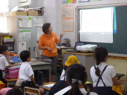 持てる知識を総動員、何とか子ども達に英語の楽しさを伝えようと先生方も必死です。