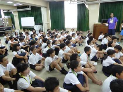 100人近い人数にもかかわらず、ざわつくこともなく、しっかりとカイル先生の自己紹介に耳を傾けていました。