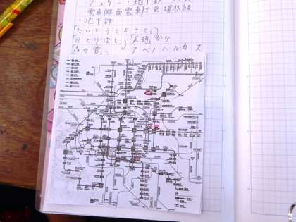 先ずは、配布された大阪市の路線図を見て、最寄の駅(だいどう豊里駅)をチェック、次は「春の遠足」の経路をたどっていきます。