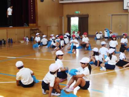 「やってみよう」「僕の心をつくってよ」にのせて、青い布