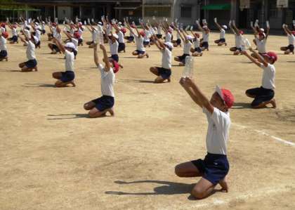 今は、鳴子のかわりに手にはペットボトル、基本的な動きをしっかりと確認しています。きびきびとした動き、声出しもばっちり。これからどんどん磨きがかかってきそうです。
