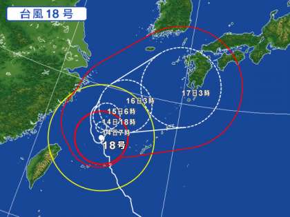 台風18号は勢力を強め、日本列島上陸の進路をとっています。