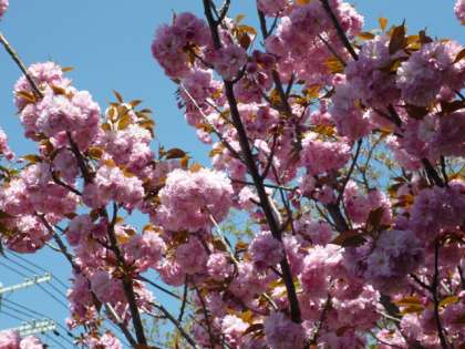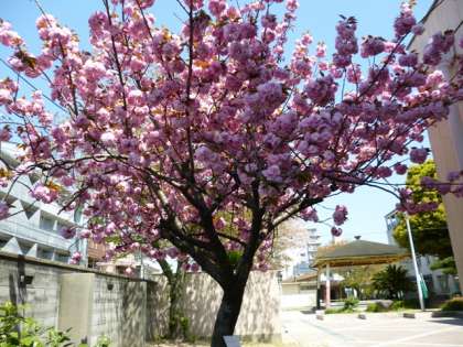 この豊里にもたった1本、八重桜が今を盛りに咲き誇っています。