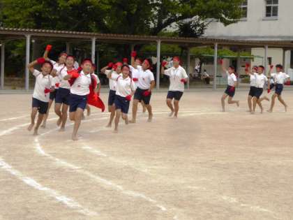 「校長せんせぇ、もう声かれたわぁ。」