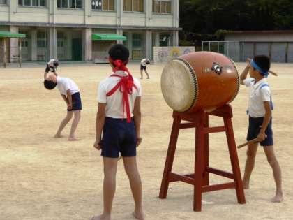15日の放課後、運動場での応援団の練習です。