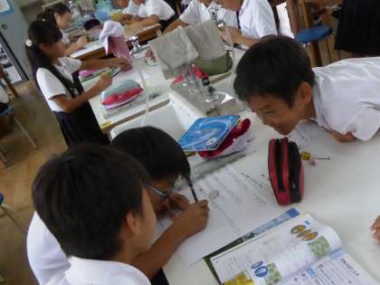 花のつくりやでき方に興味を持ち、見出した問題を追及する活動を通して、花の役割や受粉と結実との関係をとらえるとともに、生命を尊重させる態度を養い、生命の連続性についてのかんがえを持てるようにすることが目的です。
