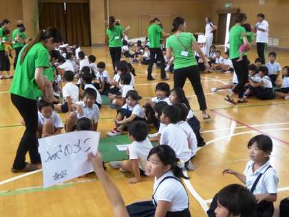 また、児童は児童で赤ちゃんを抱いたことのないものも多く少々及び腰。でも、屈託のない赤ちゃんの反応にすぐに打ち解け、キラキラと目を輝かせていました。