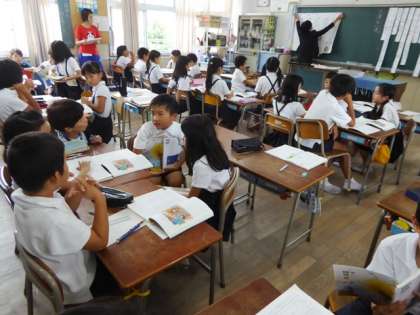 学年の代表者(教諭)が校内公開授業を行う授業研究会があります。