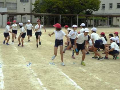 6年生にとって全員リレーはこれで2年目、バトンパスもスムーズ、だいぶ慣れてきました。