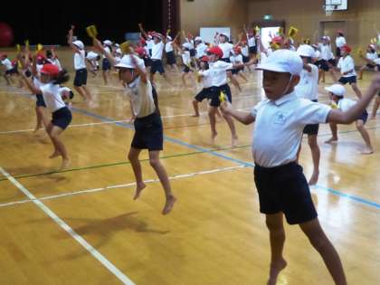 でも、音楽に合わせての基本的な動きは早々とマスター、声も出てしっかりと踊れています。