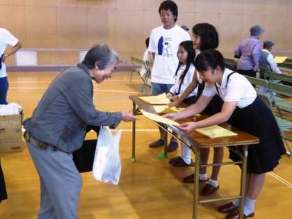 「たくさんの地域を回ってきたけれど、こうして子ども達が参加してくれるのは初めて。地域と学校との深いつながりを感じます。」とほめていただきました。