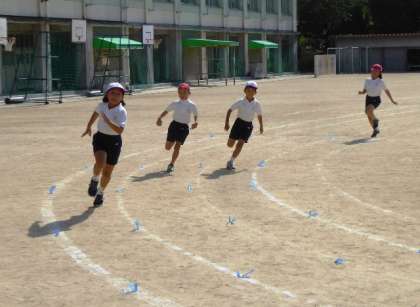 実際に100mを走っての徒競走の練習は3年生。