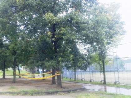警察官に「立ち入り禁止」のテープを巻いてもらい、今日10月2日には十三公園事務所に連絡を入れておくと言っていただきました。