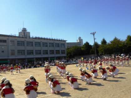 晴れ渡る青空の下、本校で「豊里幼稚園」の運動会が開催されました。