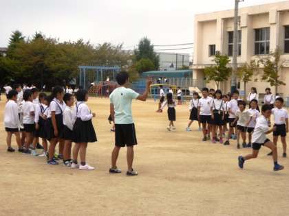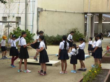 今日の昼休み、4年1組のみんな遊び「大縄跳び」です。