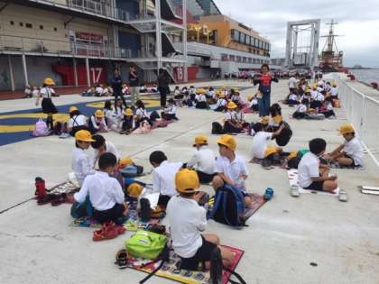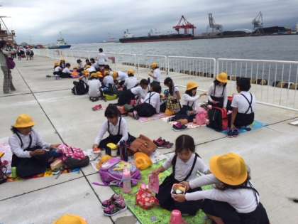 昼食は桟橋で、そのあと天保山の公園でおやつタイム&遊具遊びをしました。