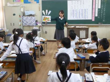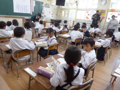 学年の代表者(教諭)が校内公開授業を行う授業研究会があります。