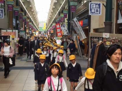 暮らしの今昔館の見学の後は、天神橋筋商店街の見学です。