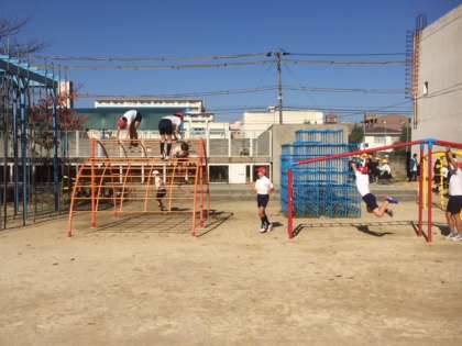 なわとびやランニングを基本に、運動場の遊具等を活用し、様々な運動をします。