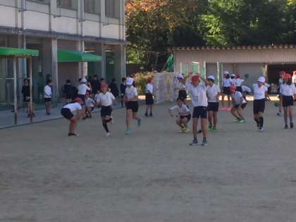 2学期のの運動強化月間は11月27日からの予定ですが、本日、6年生は体育の授業時間を使って予習?(厳密にはすこーし内容が違うのですが…)をしていました。