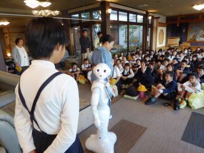子ども達の目は興味でギラギラ、誰の話しより真剣に聞き入っていました。(でも、ペッパー君は一旦、ロックオンするとなかなか視線を外してくれません。これはちょっと恥ずかしい・・・)