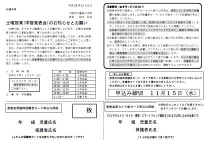 先週お配りしました、土曜授業(学習発表会)のお知らせとお願いのプリントはご覧いただけましたでしょうか。