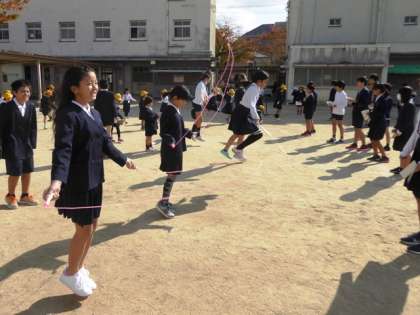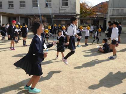 日向に出るとポカポカと絶好のなわとび日和、1回目の「なわとびギネス」を実施しました。