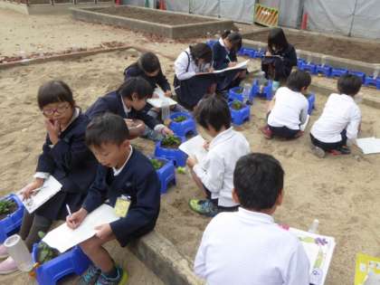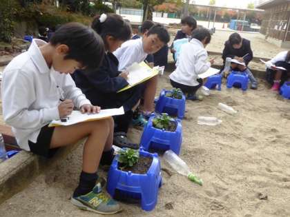 5時間目、2年2組の生活科『パンジーの観察日記』
