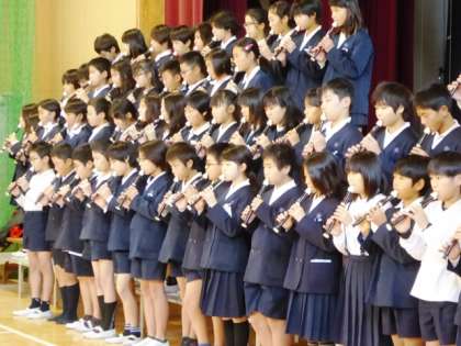 しっかりとした呼びかけや楽器の演奏で思いを伝えます。