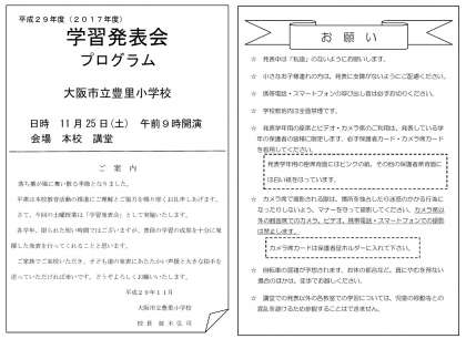 11月25日(土)に行われます土曜授業(学習発表会)のプログラムが出来上がりました。