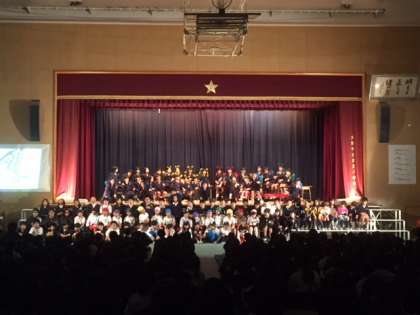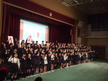 明日の土曜授業(学習発表会)に向けてリハーサルをしました。今までは学年だけの練習でしたが、今日は他の学年のリハーサルを見学しました。
