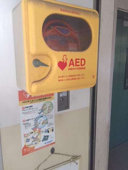 寒くなると、お年寄りなどヒートショックの心配も出てきます。本校では子どもたちの事故に備えて「AED」をエレベーター前に設置しています。でも、緊急事態の時はお使いいただいて構いません。夜間や土日など、学校が閉まっていても塀を乗り越えていただければ利用可能です。ただ、ご利用になられた場合は、事後でも構いませんので学校にご一報ください。