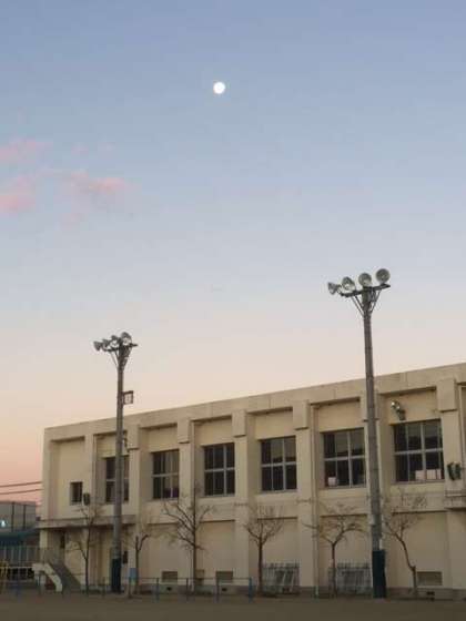 学校に到着した時は少し明るくなっていましたが、西の空には大きな月が…