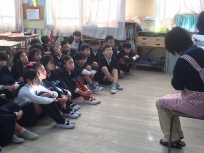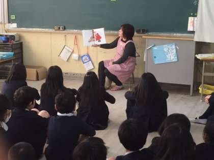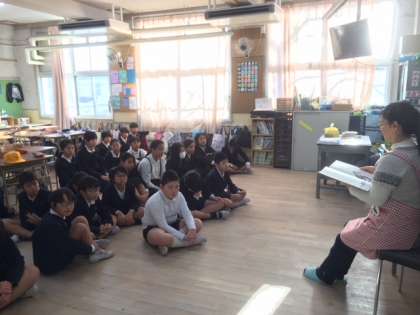 保護者や地域の方々で結成するボランティアグループ『えほんばたけ』さんが各学年順番に読み聞かせを行ってくれています。
