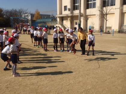 2年生は跳ぶ子が無理なく跳べるタイミングをそれぞれ決めて、みんなでとんだ回数を数えながら楽しく協力して取り組んでいました。 (教務)