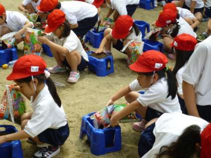 毎日の水やりを含め、子ども達のあさがお奮戦記が始まります。 (学校長)