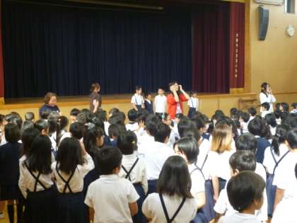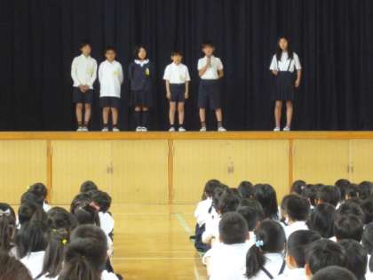 本校では、毎週月曜日の朝は、校長や先生方がいろんなお話をする『児童朝会』、木曜日の朝は、子ども達が中心となってさまざまな取り組みやお知らせを行う『児童集会』を実施しています。