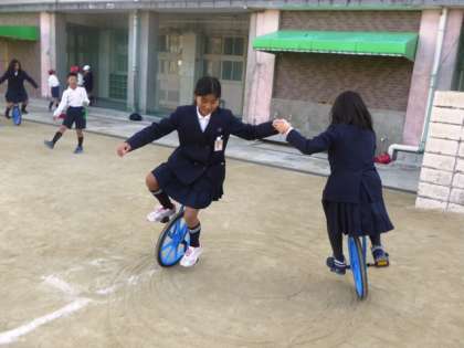 昨日導入したばかりの一輪車、さっそく楽しんで遊んでいますが、