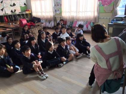 保護者や地域の方々で結成するボランティアグループ『えほんばたけ』さんが各学年順番に読み聞かせを行ってくれています。