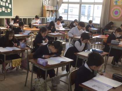 昨年度より大阪市の全小学校で始まった学力経年調査、今年度の調査は昨日に引き続き今日が2日目です。