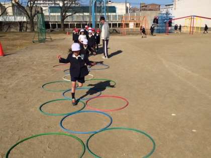 そこで、鉄棒・うんてい・フープ・ラダー・短縄なども取り入れて、サーキットトレーニングで全員がしっかり体を動かしました。