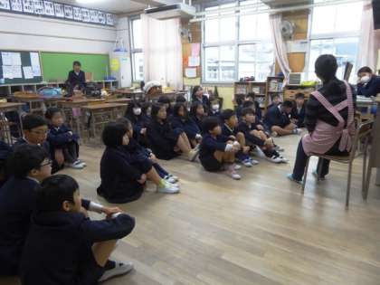 保護者や地域の方々で結成するボランティアグループ『えほんばたけ』さんが各学年順番に読み聞かせを行ってくれています。